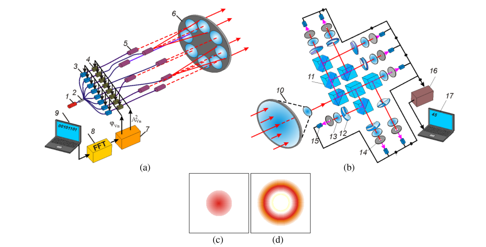 В рамках исследования предложена оригинальная оптическая схема передачи информации, основанная на когерентном объединении восьми лазерных пучков с различными значениями ОУМ. Теоретически и численно показана возможность побайтовой передачи данных — от 0 до 255 за один цикл — с чётким разделением восьми независимых информационных каналов. Моделирование демонстрирует резкое снижение перекрёстных помех по сравнению с традиционными методами модового мультиплексирования и потенциальную скорость передачи, ограниченную лишь быстродействием модуляторов (порядка 10⁻¹¹ с).